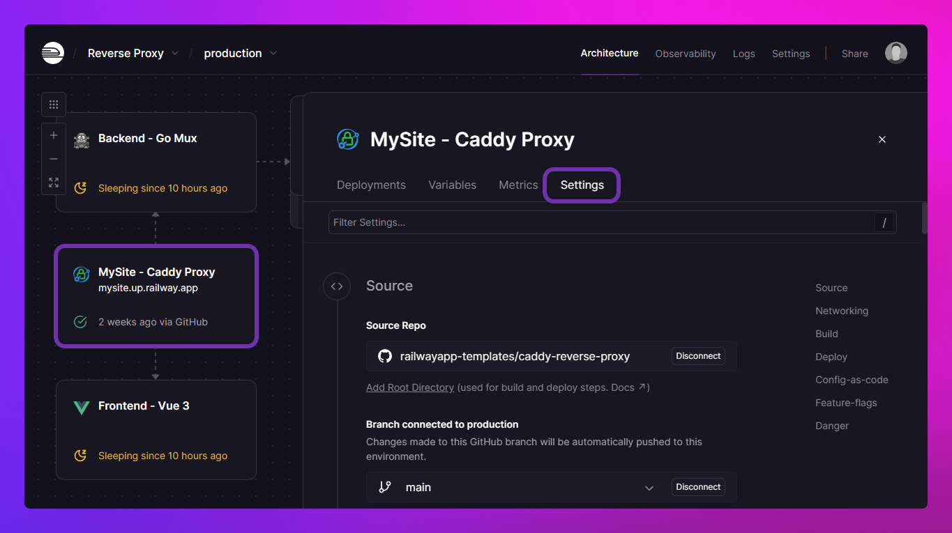 Networking - Generate a Railway-provided domain or add your own custom one.